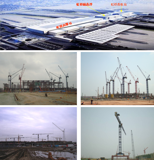 ◎上海虹橋磁懸浮站采用中昇建機二臺ZSL750行走式塔機(最大吊重50t)和二臺ZSC6090行走式塔機(最大吊重35t)