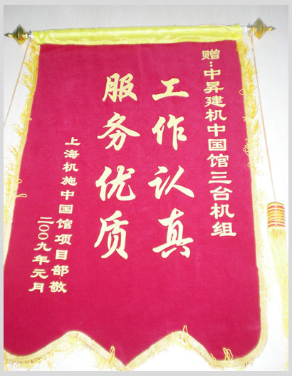 我公司上海世博會中國館三臺機組及趙永松、王亮、韓亮等十七位工程師因其在工作中出色表現,獲上海機施中國館項目部高度肯定。