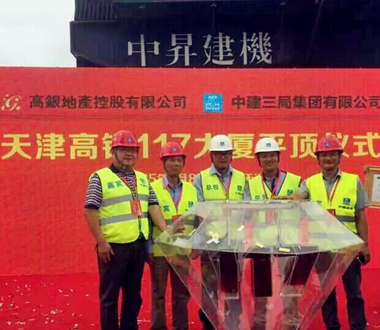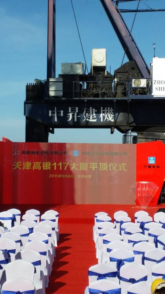 2015年9月8日上午,隨著最后一車12方混凝土泵送出管,2015年9月8日上午,隨著最后一車12方混凝土泵送出管,由中昇建機參建的天津117大廈主塔樓核心筒結構高度達到596.5米,成為世界結構第二高樓,中國結構第一高樓(世界結構第一高樓為哈利法塔)。117大廈建筑體量約為84.7萬平方米。
