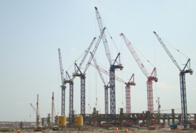 我公司自主研發(fā)制造的國(guó)內(nèi)最大水平塔式起重機(jī)於遼寧綏中電廠正式啟用 2008-07-21 |