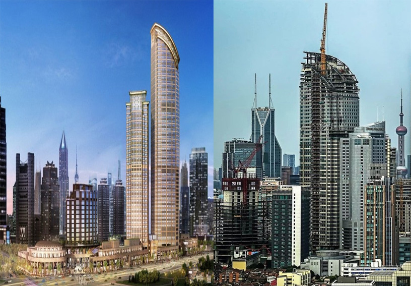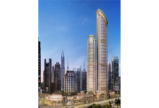 施工高度341米,采用中昇建機一臺ZSL2700(最大吊重100t)