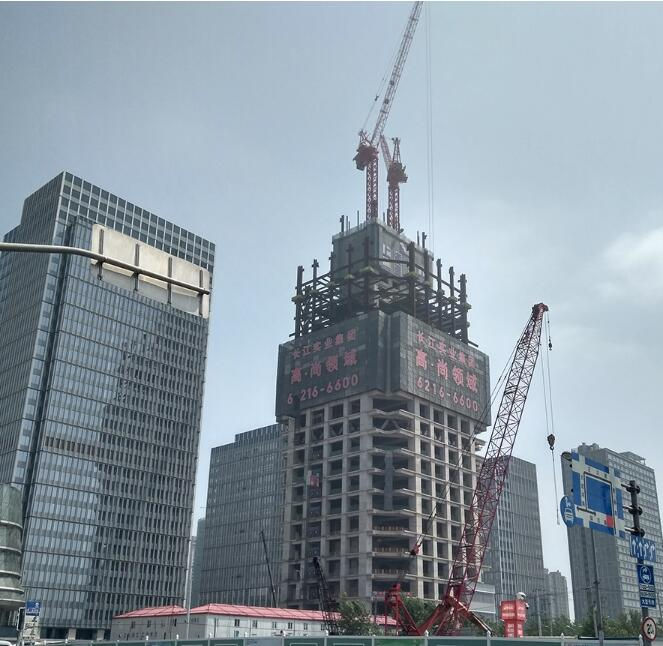 施工高度307米,采用中昇建機兩臺ZSL1250(最大吊重64t),一臺ZSL750(最大吊重50t)