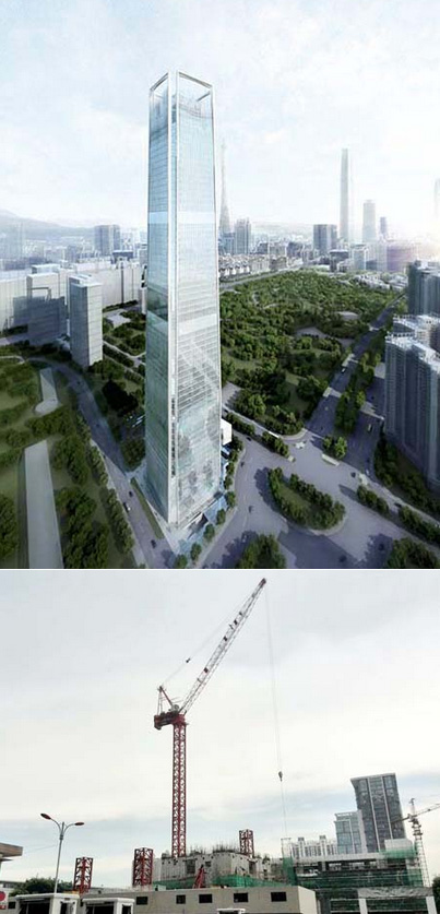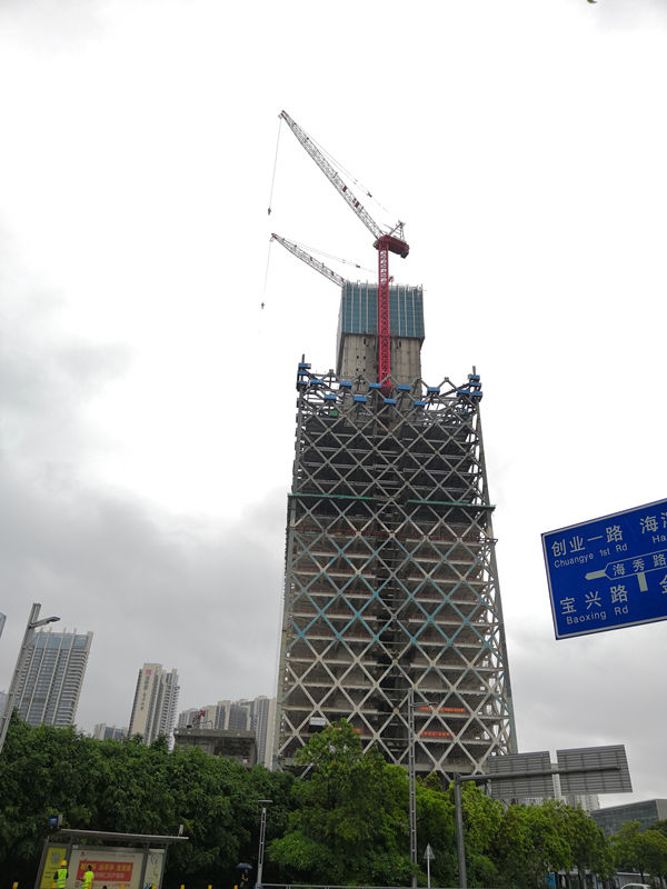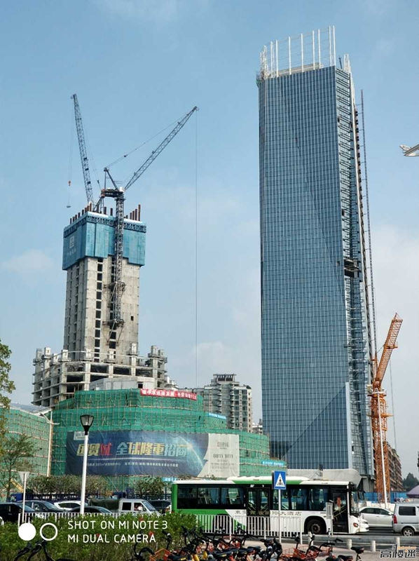 施工高度317.6米,采用中昇建機(jī)兩臺ZSL750(最大吊重50t)