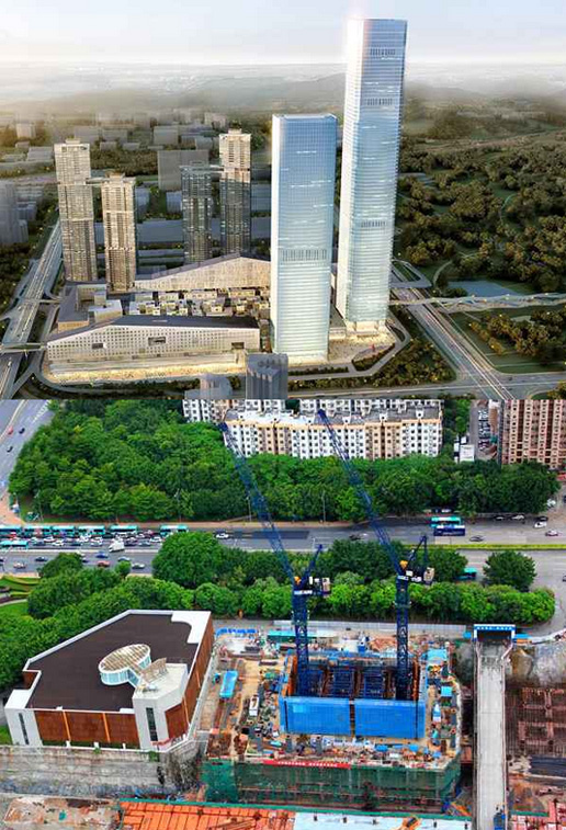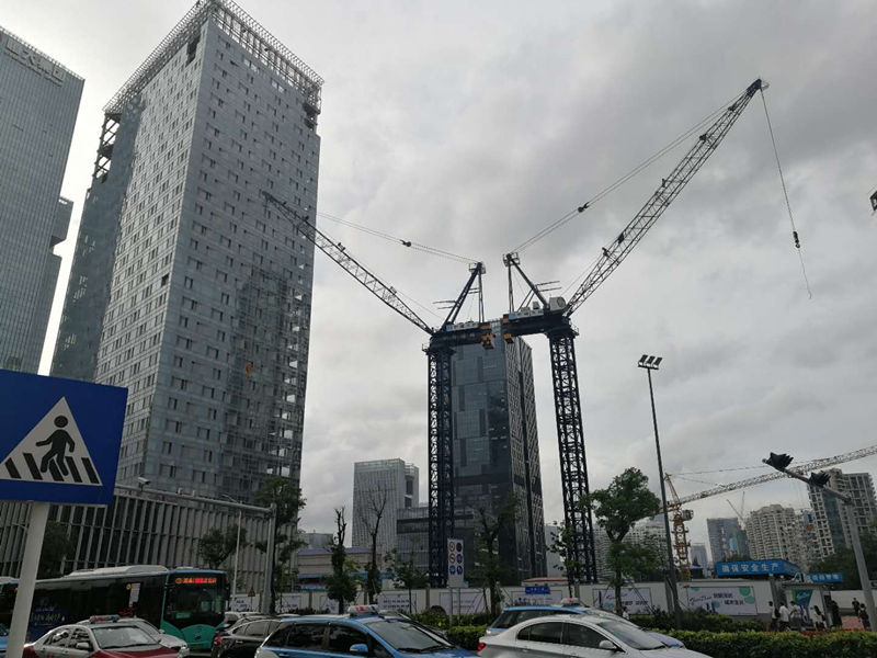 施工高度428米,采用中昇建機(jī)ZSL850(50t)、ZSL750(50t)、和ZSL380(32t)各一臺。