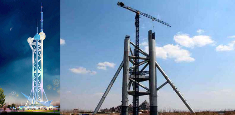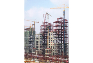 施工高度264.8米,采用中昇建機內爬動臂式塔機ZSL1000(64t)兩臺