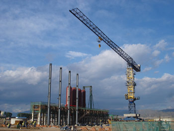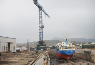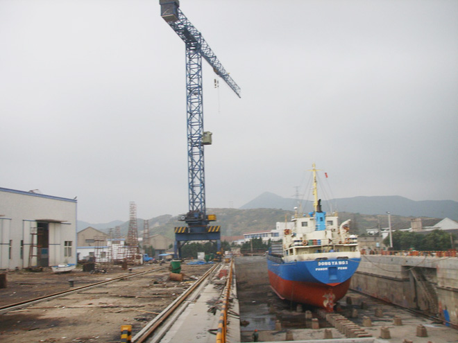 采購兩臺中昇建機門式行走塔式起重機ZSC28300、ZSC26300,立于船塢旁用于船舶的生產和維修。