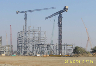 建筑施工高度438米,采用中昇建機(jī)ZSL380(32T)一臺。